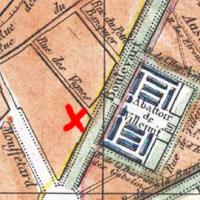 Notes: The buildings actually numbered 50 and 52 are much further up the boulevard, close to the Salpêtrière. Hugo describes the whole area in detail, so it's possible to retrace the footsteps of his hypothetical wanderer into the then-gloomy area of the Gobelins: down the boulevard de l'Hôpital, past the Marché aux Chevaux, or horse market, now the rue Duméril; beyond the rue du Petit-Banquier, now the rues Watteau and Pinel; and finally the Gorbeau house, between the rue des Vignes (now rue Rubens) and the Place d'Italie, facing the rue de la Barrière des Gobelins (now rue Fagon).