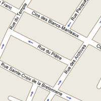 Notes: The section of the rue des Archives between the rue Sainte-Croix de la Bretonnerie and the Clos des Blancs-Manteaux used to be the rue de l'Homme-Armé. There's a plaque on no. 40 indicating the former name of this part of the street, though it should be noted that this is not where Valjean's apartment would have been--no. 7, rue de l'Homme-Armé would have been the fourth building on the other side of the street. This spot is part of the Marais walk, if you're interested in exploring nearby locations.